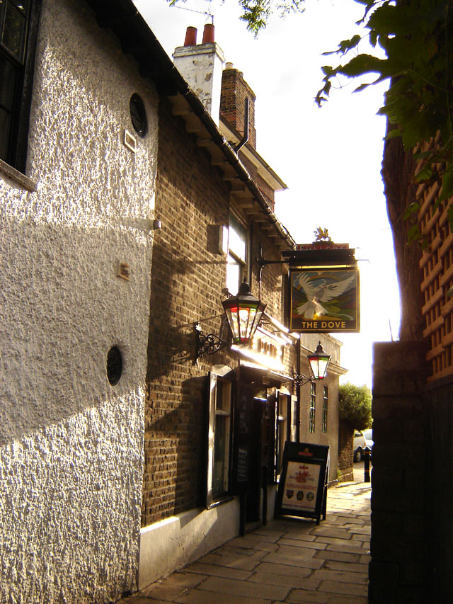 해머스미스의 템스강변에는 세계에서 가장 작은 술집으로 《기네스 북》에 올랐던 펍인 더 도브 (The Dove)가 있다.[157] 이곳은 어니스트 헤밍웨이와 그레이엄 그린이 자주 찾던 곳으로 유명하며, 시인 제임스 톰슨이 머물며 《지배하라 브리타니아여》를 썼다고 알려져 있다.[158] 더 도브가 서있는 좁은 골목거리는 해머스미스 강변 마을이 유일하게 보존되어 있는 부분으로, 나머지 지역은 1930년대에 대부분 철거됐다. 동쪽으로는 퍼니벌 가든이 있으며 해머스미스 하천과 하이 브리지가 있던 곳이기도 하다.[159]