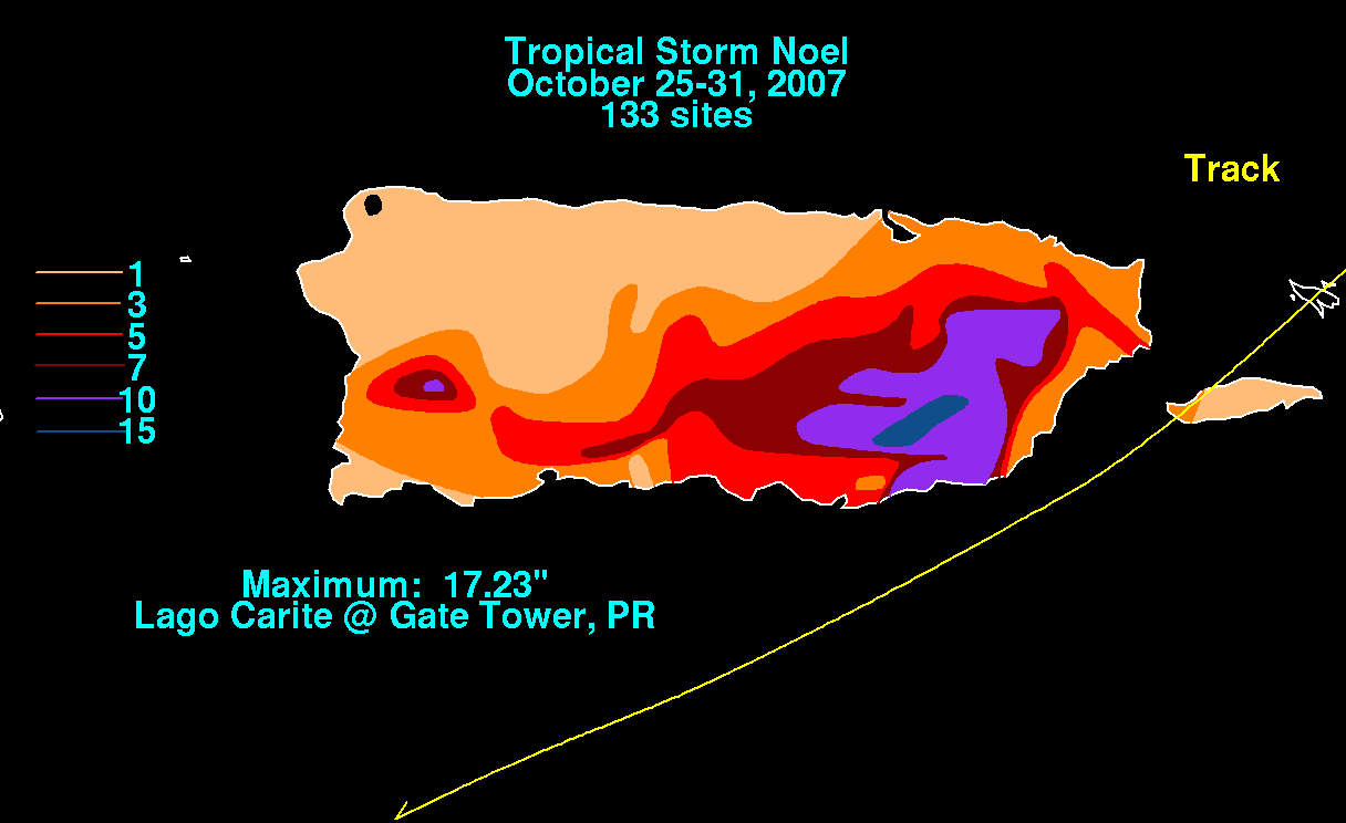 허리케인 노엘은 10월 16일 아프리카 부근 해상에서 발생한 저기압으로부터 시작되었다. 이 저기압은 안틸레스 제도를 향해 이동하다가 10월 28일, 미국 국립 허리케인 센터에 의해 열대저기압 제16호로 지정되었다. 같은 날 열대폭풍우(허리케인 전등급)로 발달하여 히스파니올라섬에 접근하기 전까지 풍속 60mph로 강화되었다.[5] 이후 아이티에 상륙하면서 산악 지형의 영향으로 세력이 급격히 약화되었다.[9]도미니카 공화국을 빠져나온 후, 노엘은 약화된 열대폭풍우 상태에서 풍속 40mph를 기록했다. 10월 30일에는 풍속 60mph로 쿠바 기바라 근처에 상륙했다.[11][12] 쿠바를 통과하면서 세력이 약화되었지만, 11월 1일 다시 허리케인으로 발달했다. 이 허리케인은 최고 풍속 80mph, 최저 기압 980hPa를 기록한 후 온대저기압으로 변질되기 시작했다.[24]