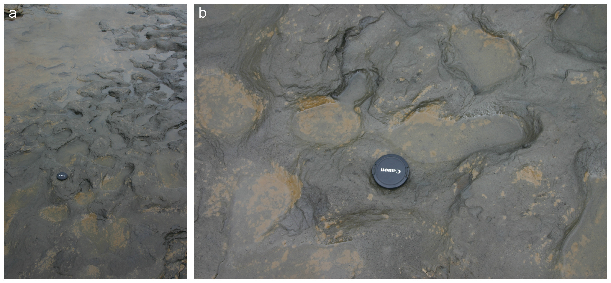 이 발자국들은 썰물 때 해변 모래 아래에 있던 고대 강 하구 퇴적물에서 노출된 상태로 발견되었다.[3][6] 이 퇴적물은 층서학적으로 크로머 숲 베드(Cromer Forest Bed) 지층의 일부로 여겨진다.[2] 그러나 퇴적물 자체가 매우 약하고 조수에 의해 빠르게 침식되었기 때문에, 발자국들은 발견된 지 불과 2주 만에 자연적으로 파괴되었다.[1]