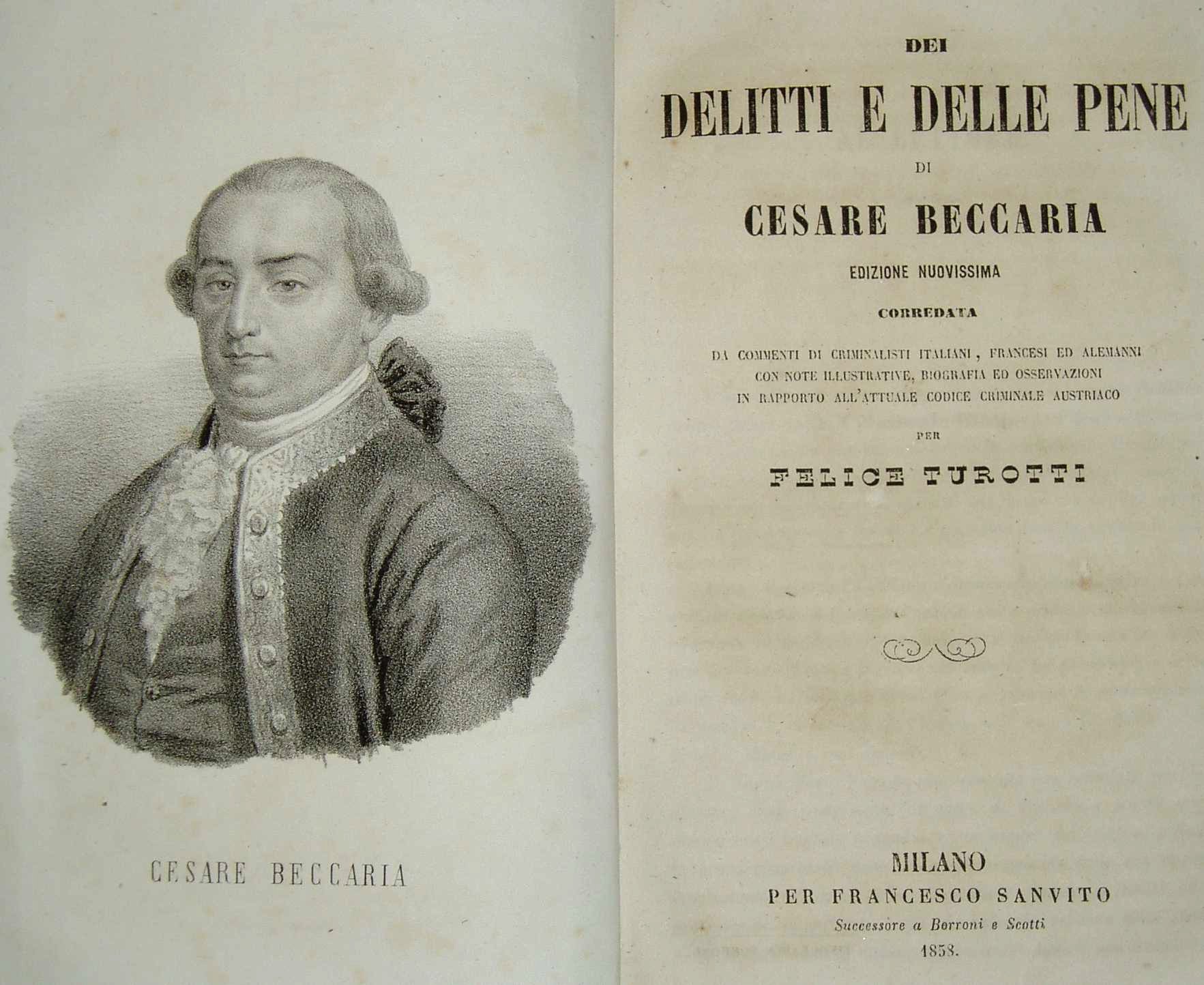체사레 베카리아가 1764년에 발표한 『범죄와 형벌』은 범죄자의 처벌과 교정에 대한 현대 이론의 기반이 되었다.[4] 베카리아는 이 책에서 비례성 개념을 강조하며, 범죄에 대한 형벌이 범죄의 경중에 따라 적절해야 한다고 주장했다. 이는 당시 잉글랜드의 피의 법전과 같이 훔친 물건의 가치에 상관없이 동일한 형벌을 부과하는 방식과는 대조적이었다. 베카리아의 사상은 이후 비살상 처벌을 더욱 용인하는 방향으로 발전했으며, 유죄 판결을 받은 죄수들이 형벌을 마친 후 사회에 재통합될 수 있도록 하는 데 중점을 두었다.[4]