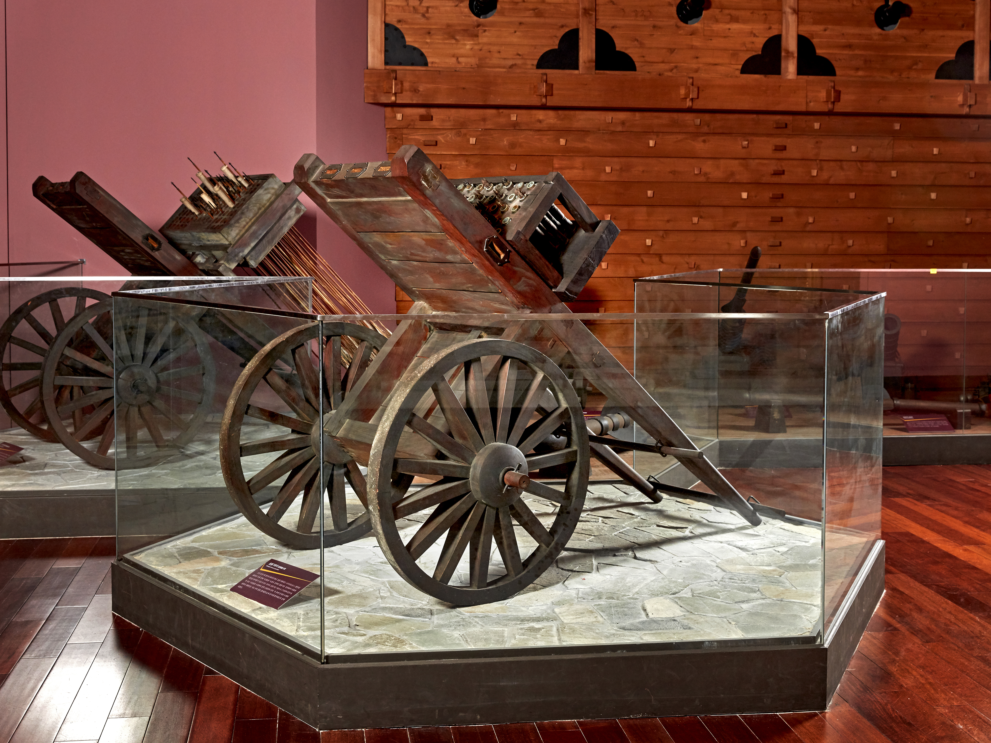 발사대는 5열 10개 총열을 가진 변형도 있었으며, 각 총열은 화살 4개를 발사했다. 화차 뒷면에는 평행한 팔 두 개가 있어 조작자가 밀고 당길 수 있었다.[15]