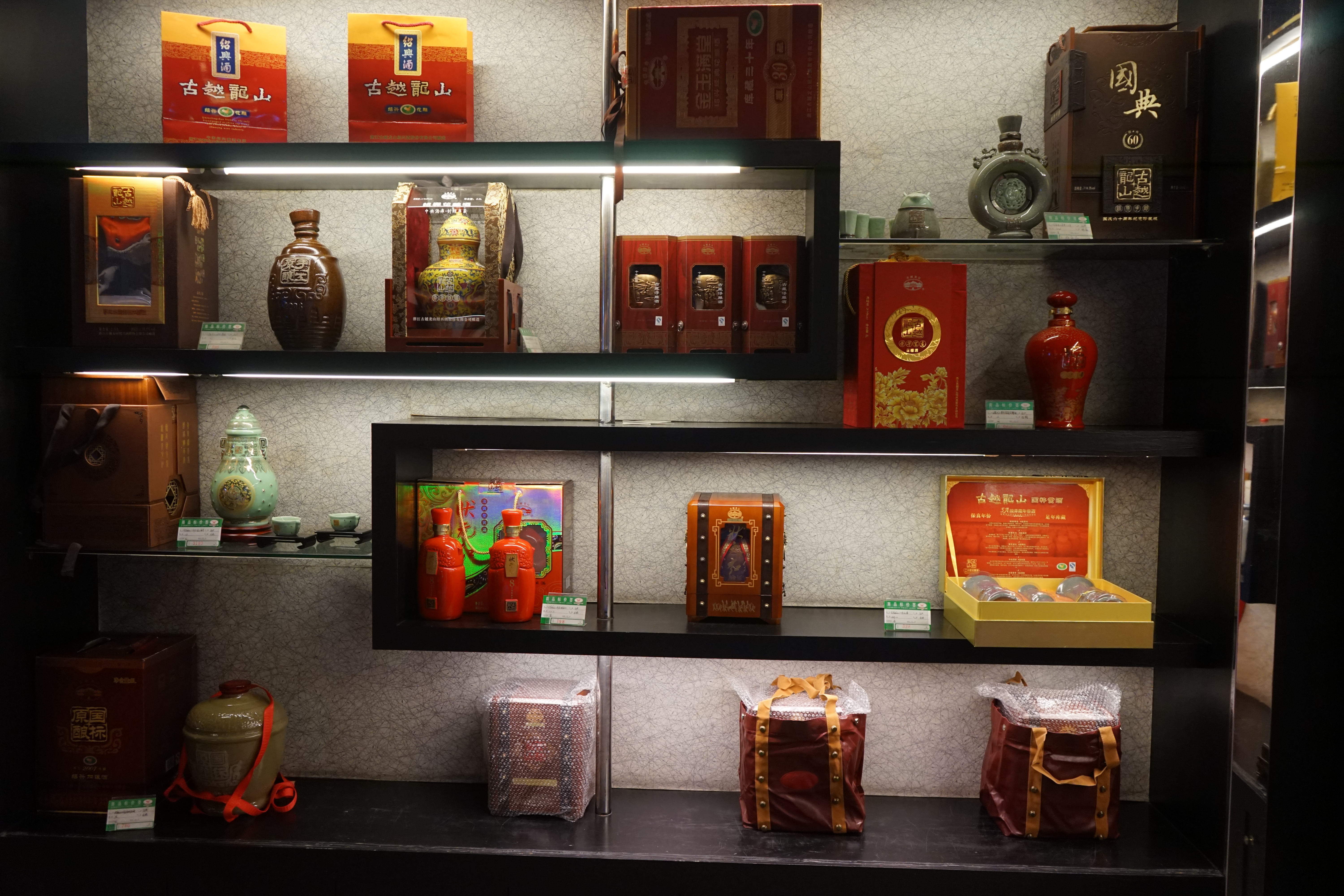 - '''사오싱주(紹興酒)''': 음용과 중식 요리(향신료와 허브를 첨가한 랴오지우)에 모두 널리 사용된다. 이 술의 붉은 색은 홍국 쌀에 의해 부여된다. 사오싱주의 주요 생산자 중 하나는 저장 구위에 롱산 사오싱 와인 유한 회사(古越龍山)이다. 사오싱주의 일부 품종은 50년 이상 숙성되는 경우도 드물다.