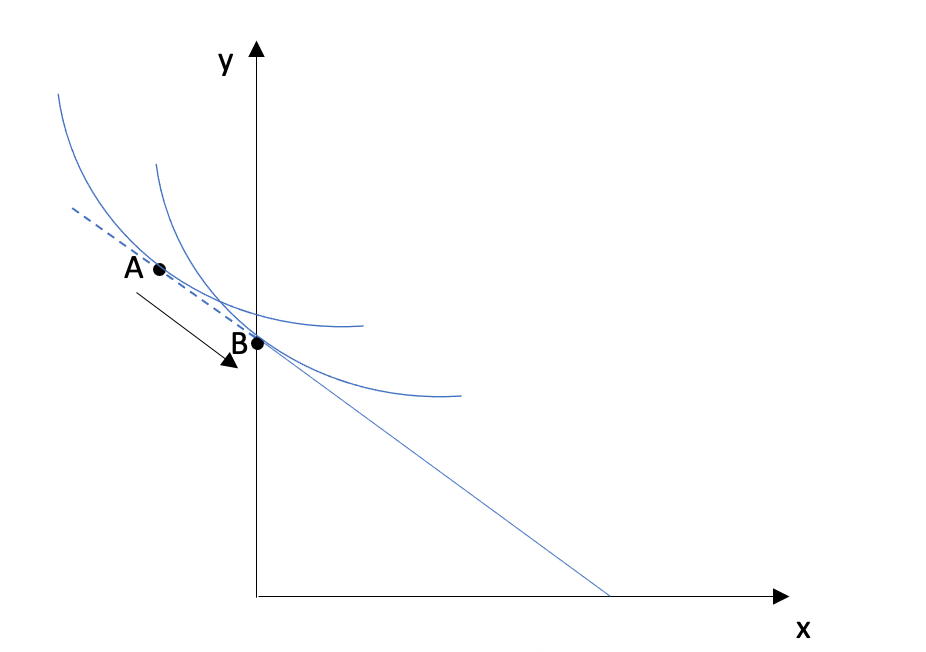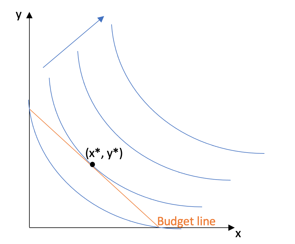 이것을 풀면 재화 x 또는 재화 y의 최적량을 찾을 수 있다.
