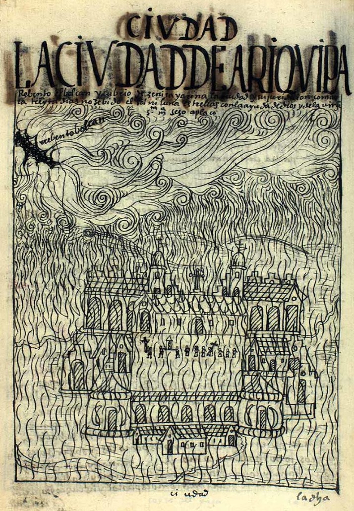 아레키파에 떨어진 화산재를 묘사한 1615년 삽화
