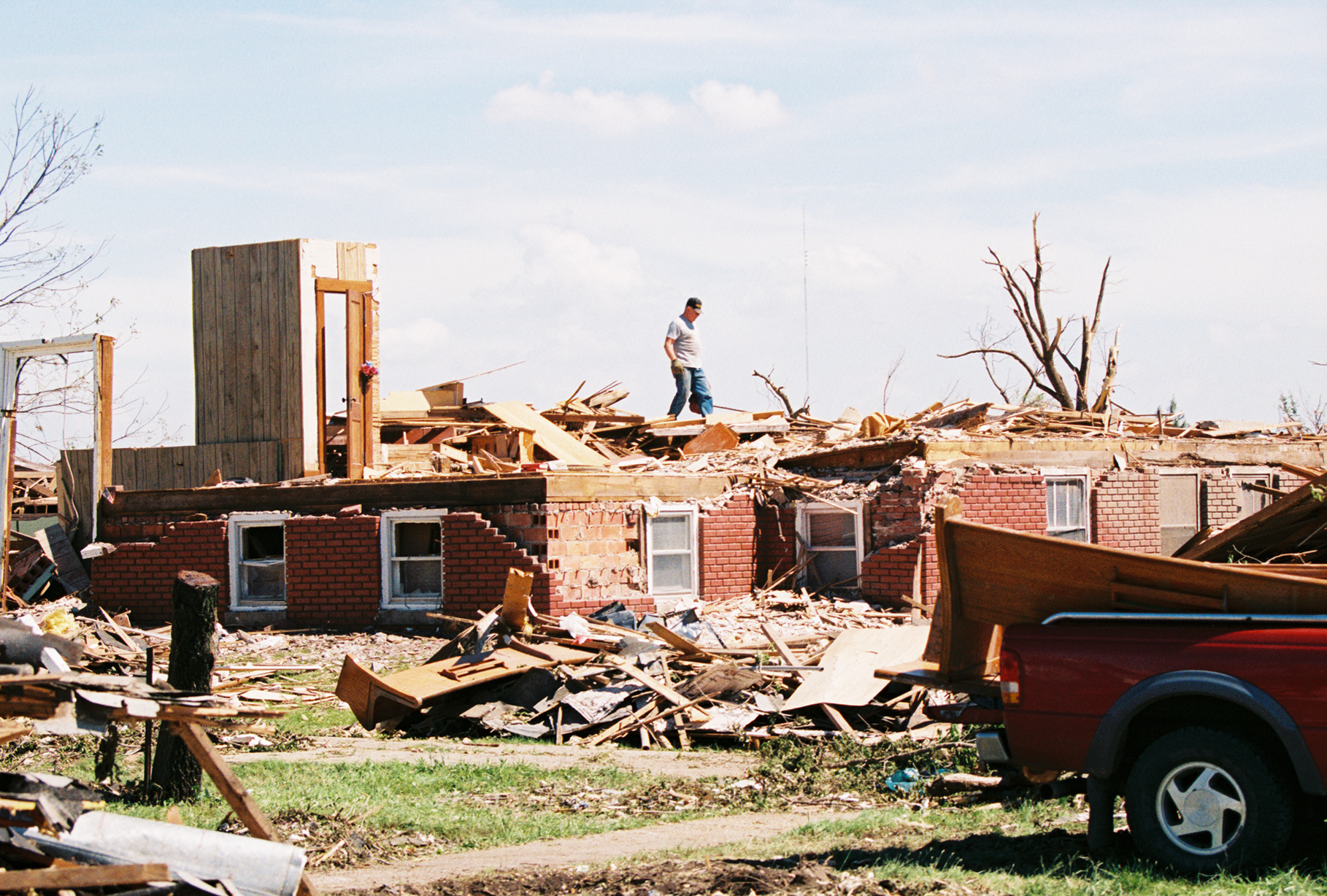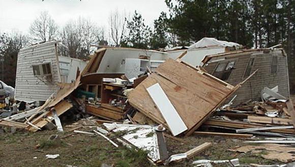 - 튼튼하게 지어지고 잘 고정된 주택은 기초에서 제거되어 파괴되기 전에 공중으로 날아간다. 해당 주택의 잔해는 수 마일 떨어진 곳으로 날아가고 해당 기초는 완전히 깨끗하게 쓸려나간다.