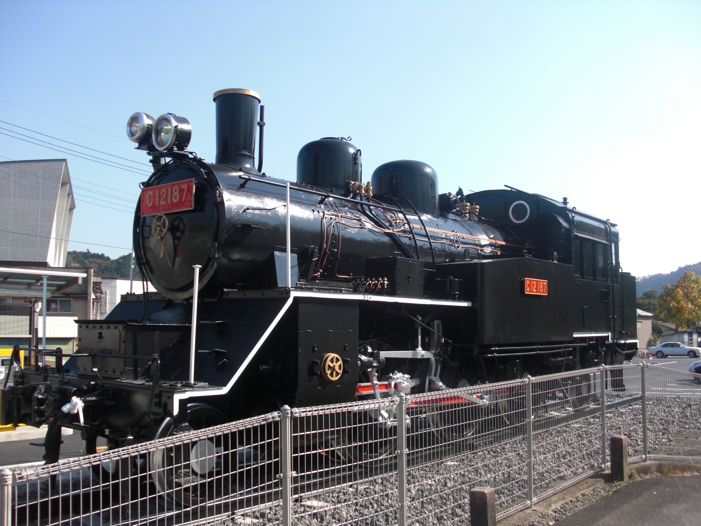 유료 주차장 입구에는 1938년 7월 27일에 일본 차량 제조 나고야 공장에서 제조되어 규슈 각지에서 운용된 후, 1967년 7월에 미토 기관구에 배속되어 1970년까지 사용된 증기 기관차 C12 187가 정태 보존되어 있다[42]. 역 앞에는 로터리가 있으며, 상점가가 있다.